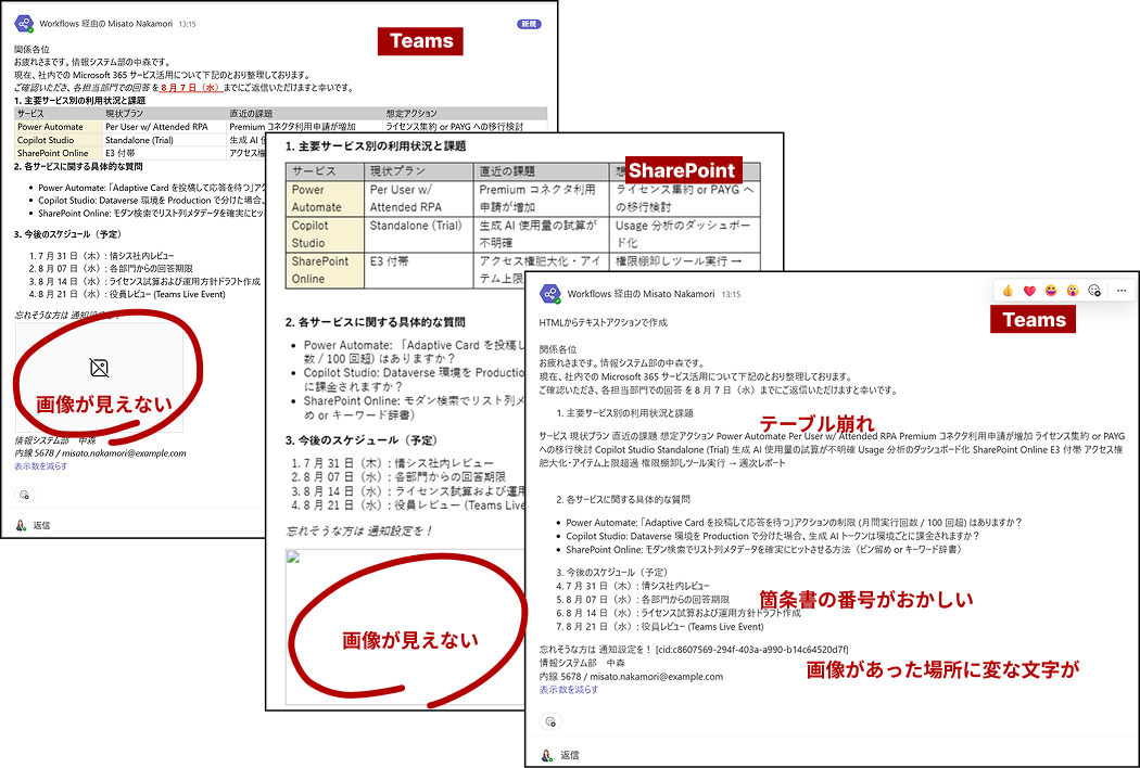 Power Automate のクラウド フローを利用して、HTML メールを Teams や SharePoint、Excel に転記するとき、このように感じることはありませんか?