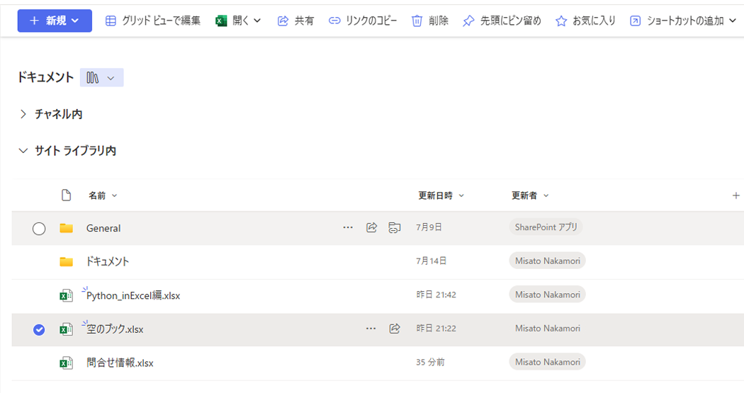 - SharePoint ライブラリに処理用の空のブックを作成し保存します。
